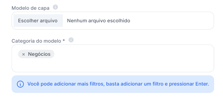 No caso das categorias, você deve optar pelas que sejam mais condizentes com a função do seu modelo, basta escolher uma ou mais das que estão disponíveis na plataforma.