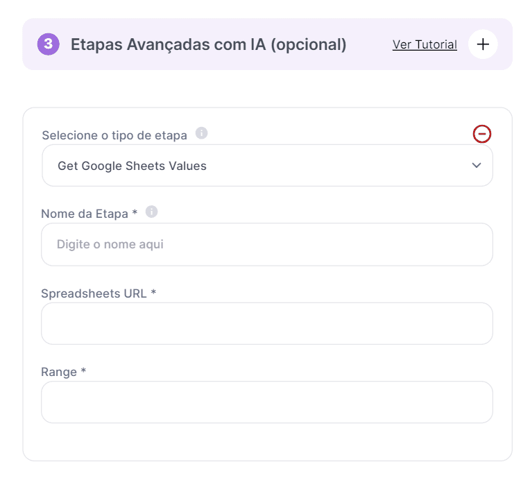 Mas para a criação deste template, não será necessário adicionar outras etapas , sendo assim, será retirado este campo, devendo ficar de outra maneira. Veja na descrição abaixo.