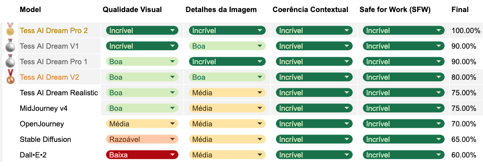 Integration: This AI is integrated with Tess AI. You can generate images with Tess AI Dream Realistic Pro and with all the models in this article (and others!) within Tess AI, starting at R$49/m.