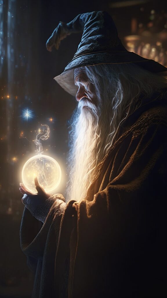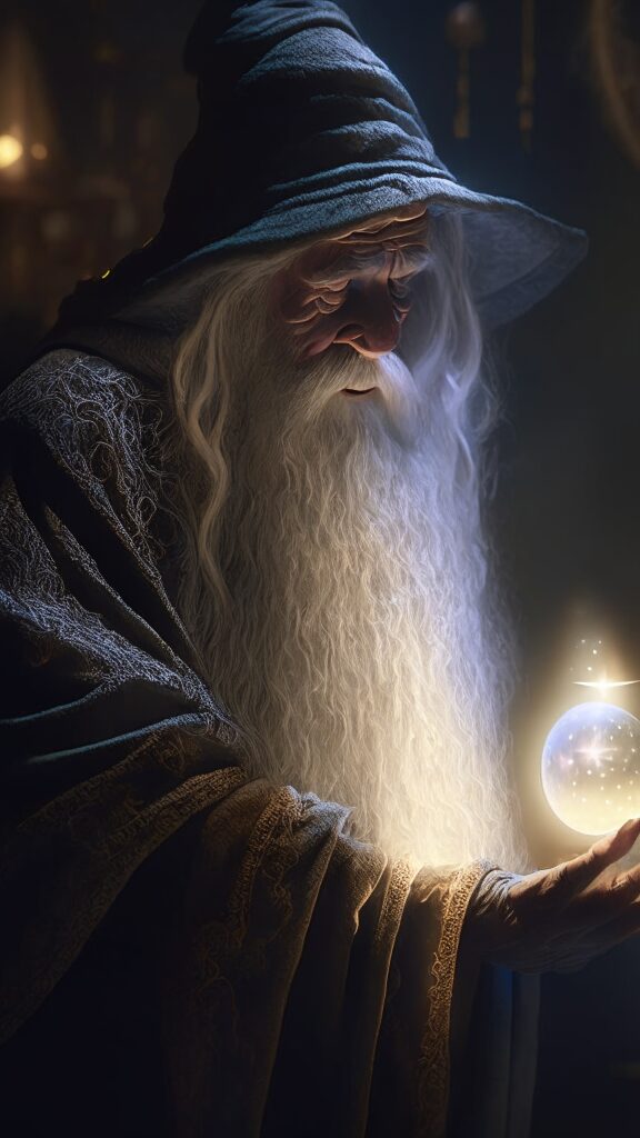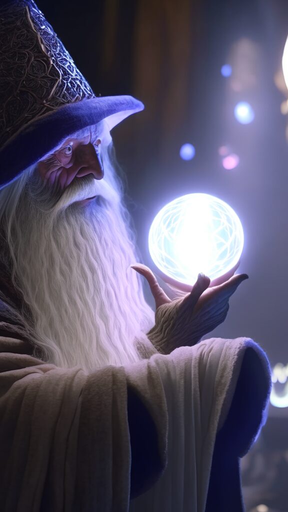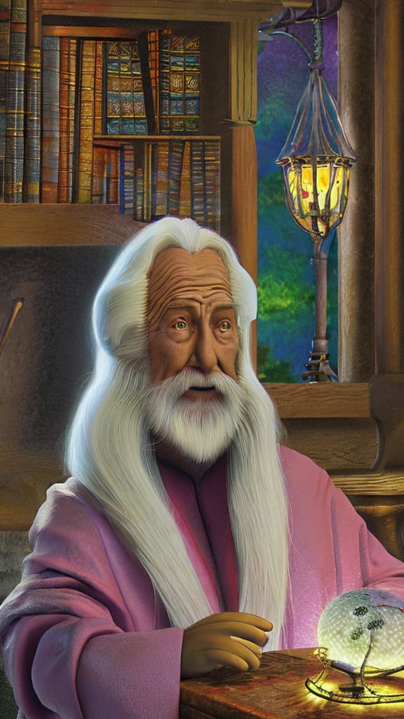 Comentarios: El modelo resultó ser exactamente lo que esperábamos. Fue capaz de construir la cara del mago de una forma inigualable, la más detallada de todas. Esto refleja el superentrenamiento de millones de imágenes que tiene esta IA para conseguir realismo. Sin embargo, a la hora de construir el escenario, se mostró un poco limitada, ignorando la presencia del orbe, el estilo de la luz y la habitación del mago.