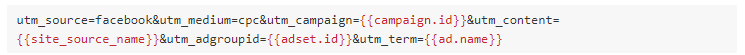Exemplo para Facebook Ads (geralmente incluímos no nível anúncio):