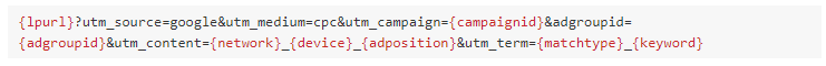 Atenção: Os tracking templates usados pelas plataformas serão os que estão no nível mais granular, ou seja, se há um tracking template no nível conta e outro no nível grupo de anúncio, o que será considerado será o do nível grupo de anúncio.
